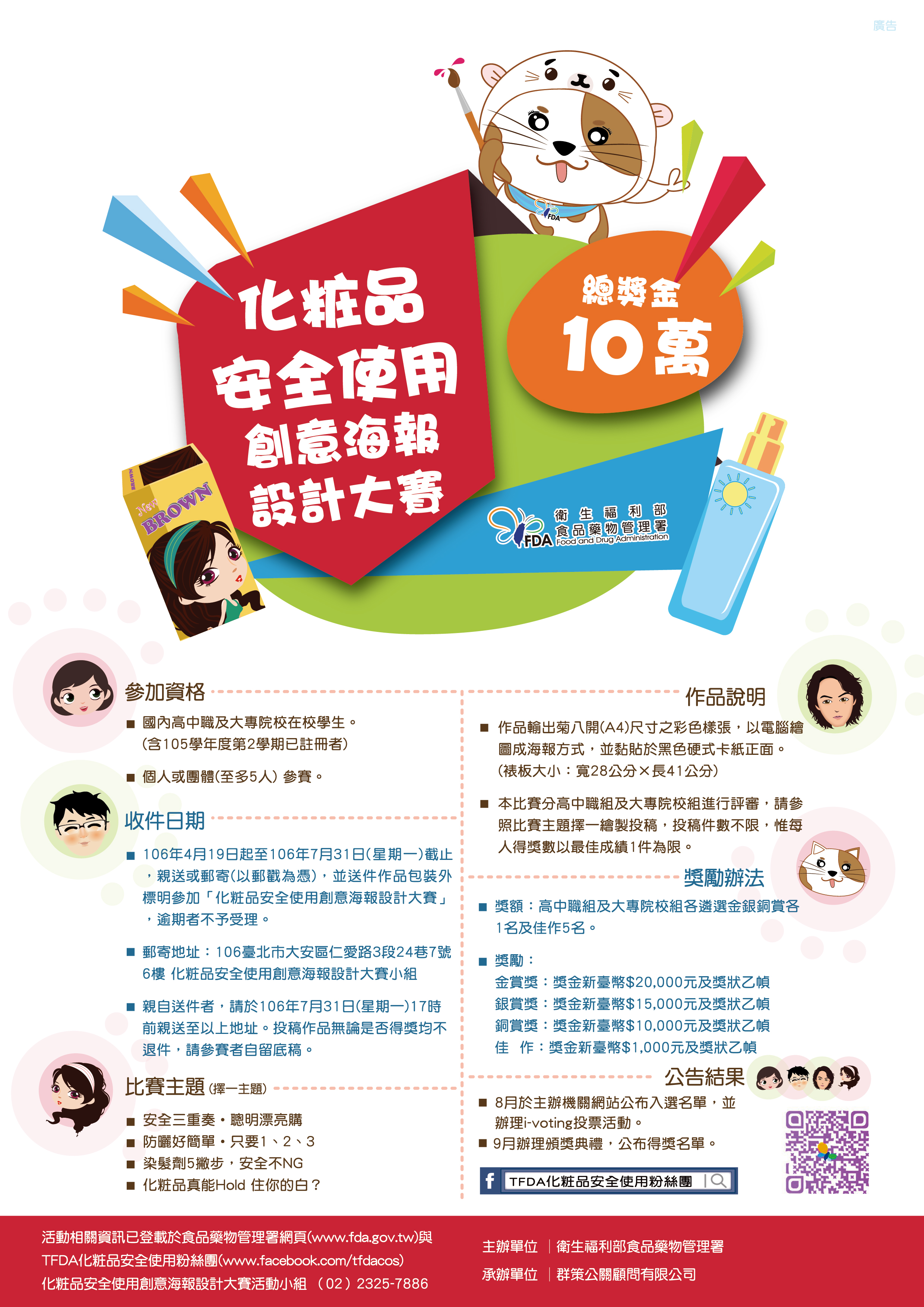 衛生福利部食品藥物管理署委託群策公關顧問有限公司辦理「化粧品安全使用」創意海報設計大賽!