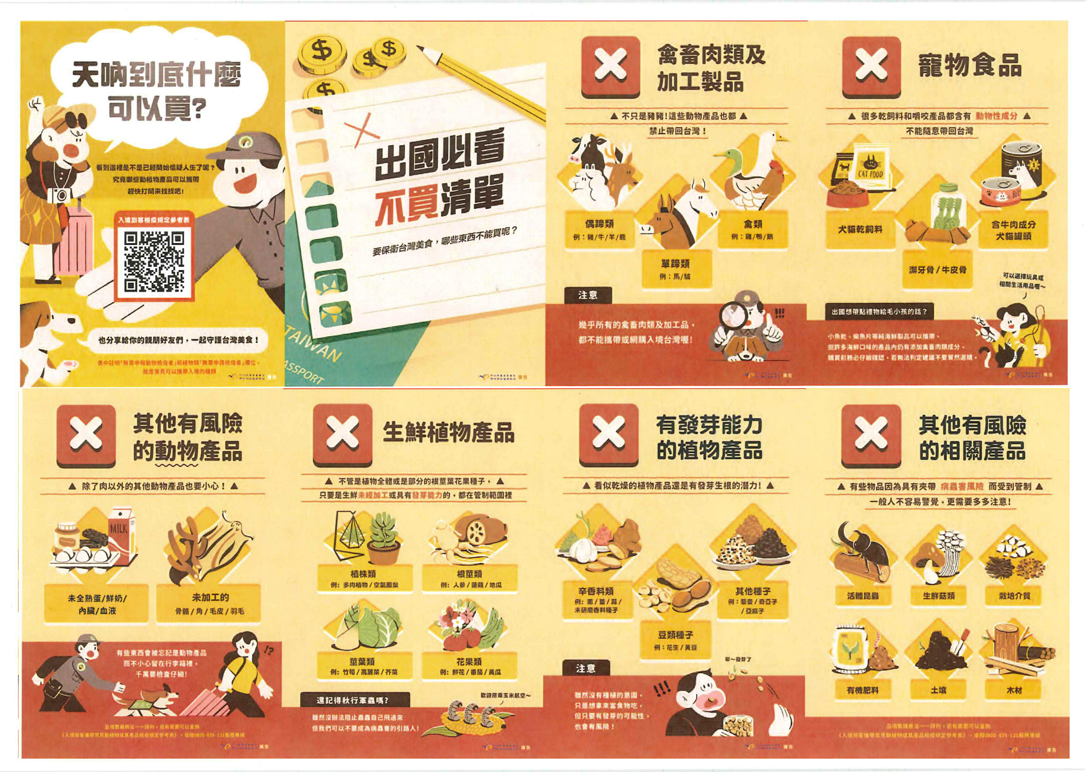 鄰近亞洲地區非洲豬瘟疫情延燒,為防堵非洲豬瘟疫情入侵及強化國人防疫意識,行政院農業委員會依據「常見入境旅客攜帶動植物或其產品檢疫規定參考表」,提醒國人--出國必看不買清單