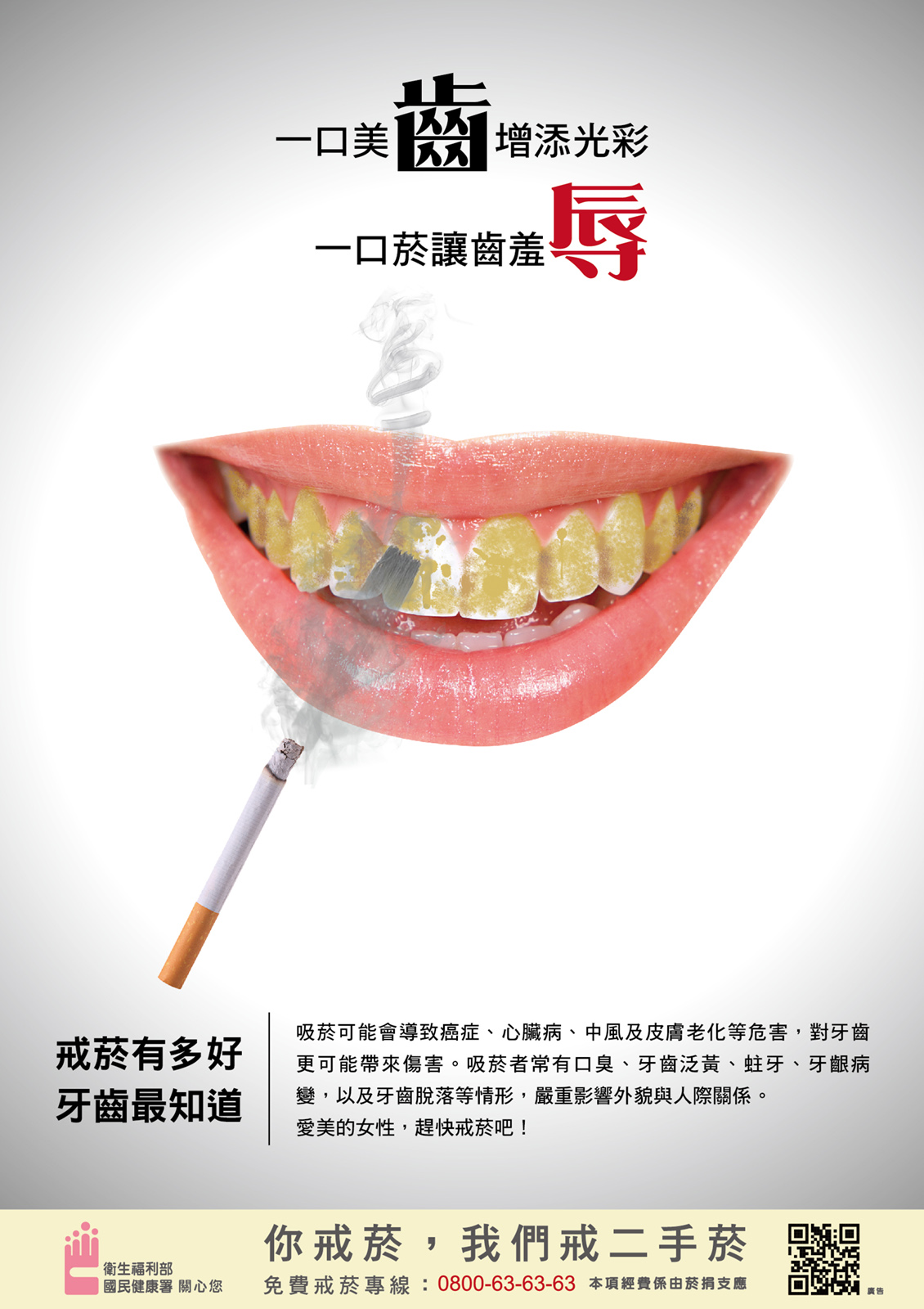 一口美齒增添光彩 一口菸讓齒羞辱 戒菸有多好牙齒最知道