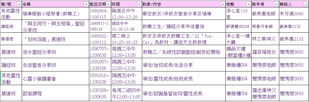 (其他活動將持續公布,請參閱校牧室網站:http://www.chaplain.fju.edu.tw/#&panel1-1 信仰靈修–慕道班 訊息)