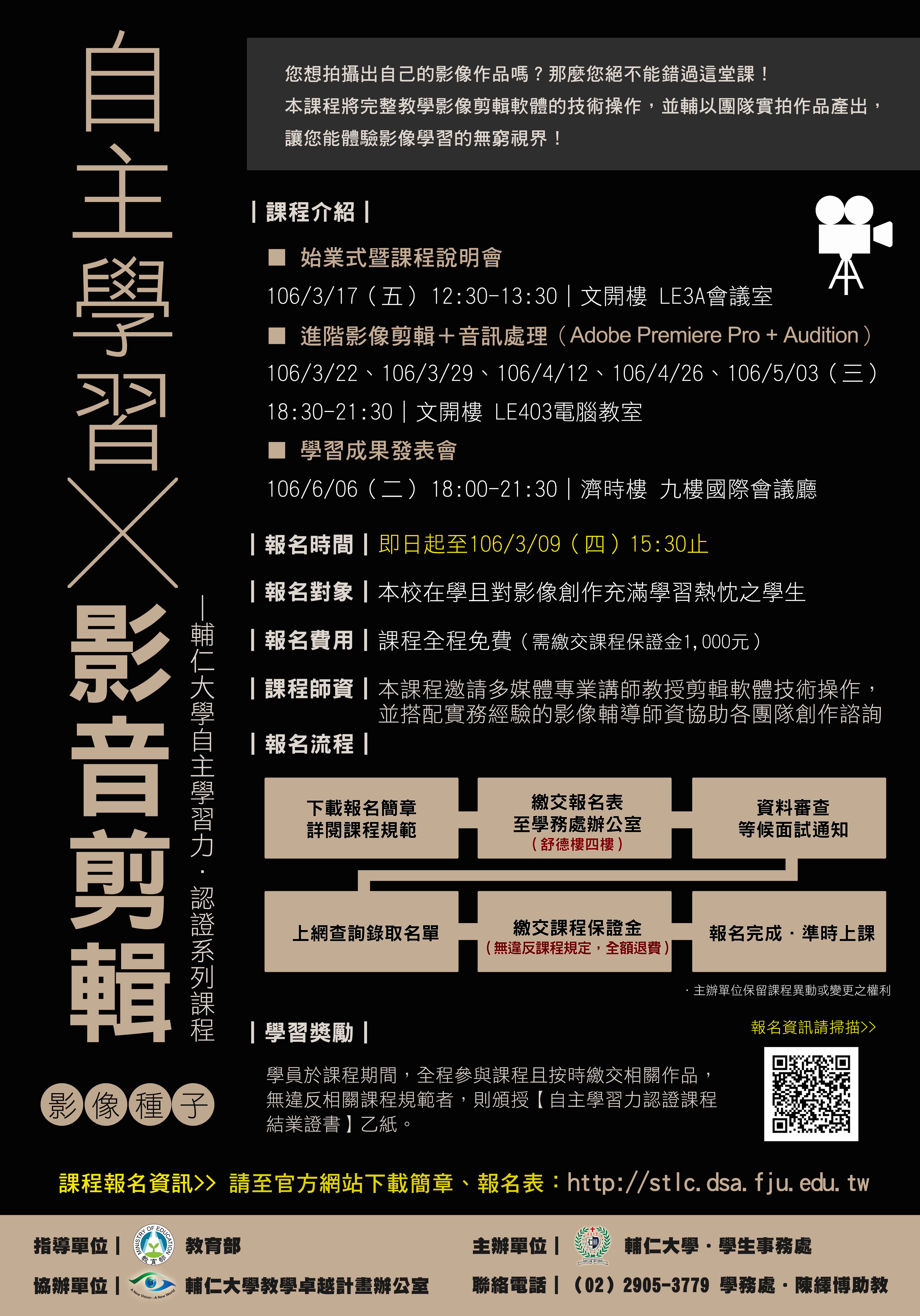 一、報名資格:本校在學且對影像創作充滿學習熱忱之學生。