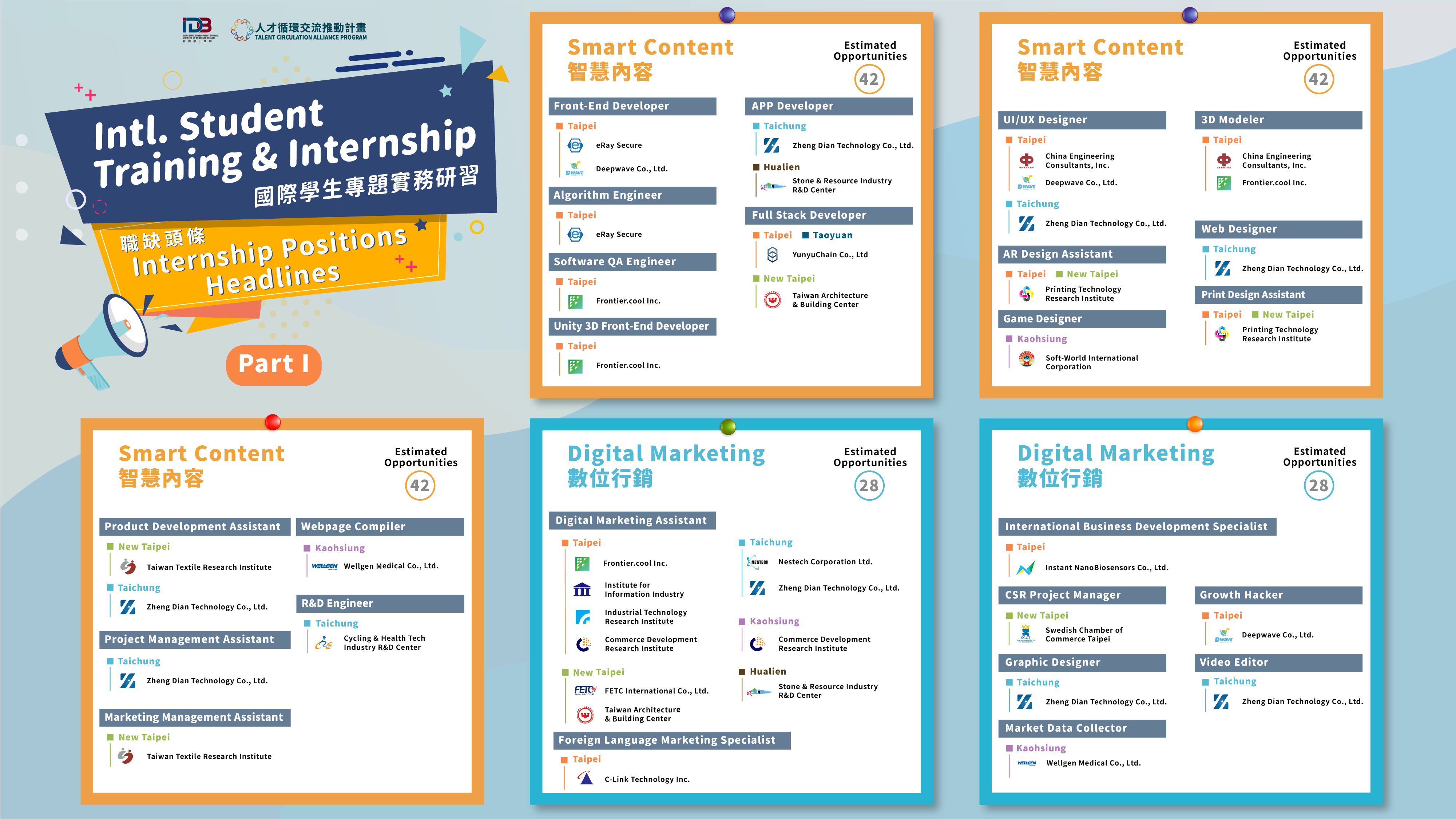 今年,共有25家臺灣知名研習單位,超過40個不同領域的職缺讓你一展所長,學以致用,儘早踏足社會!